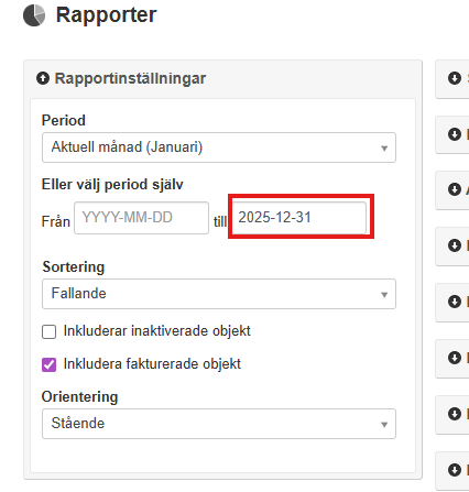Tips: Glöm inte att ställa in ”från” och ”till” datum som rapporten ska omfatta i rapportinställningarna till vänster.
